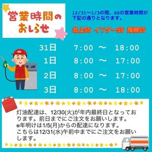 当社サービスステーションの年末年始の営業時間は↓こちら↓。